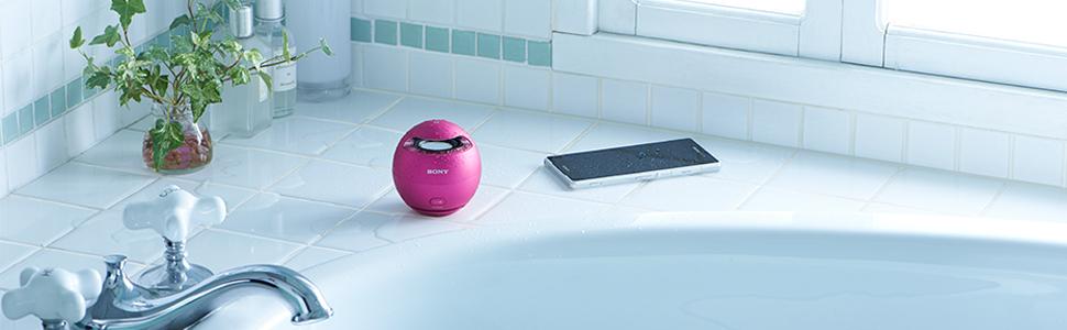 お風呂でも安心して使える防水性能 JIS防水保護等級 IPX7/IPX5相当の優れた防水性能により、バスルームでシャワーの水がかかっても大丈夫。プールサイドやキッチン、アウトドアでも水しぶきを気にせず、ワイヤレスで音楽を楽しめる。 |