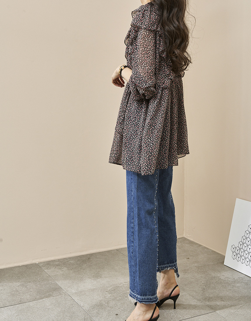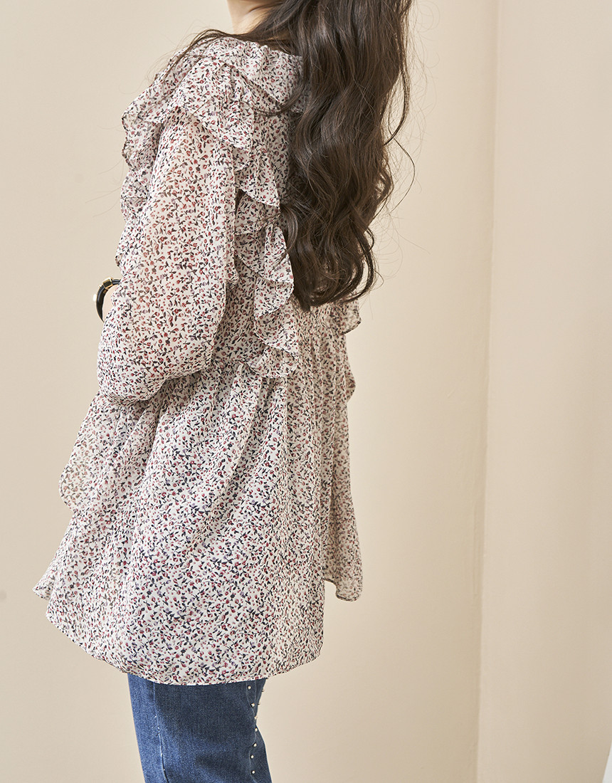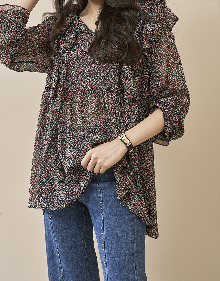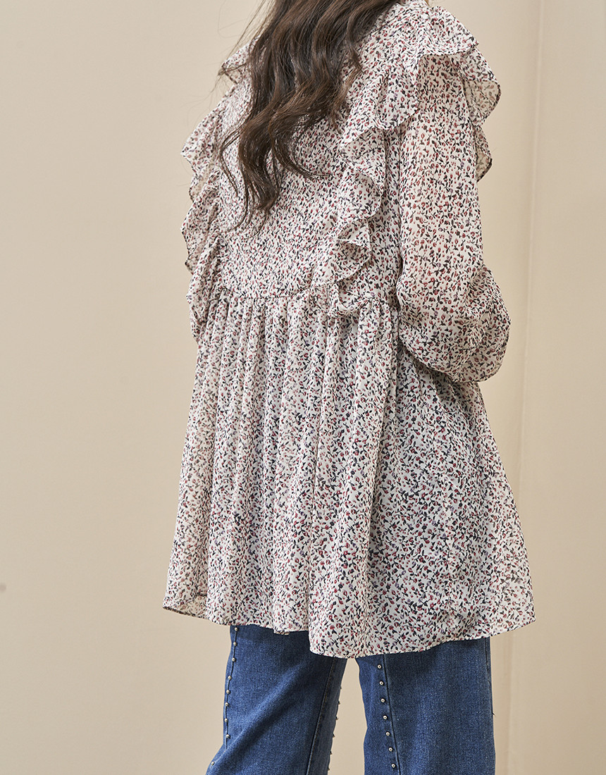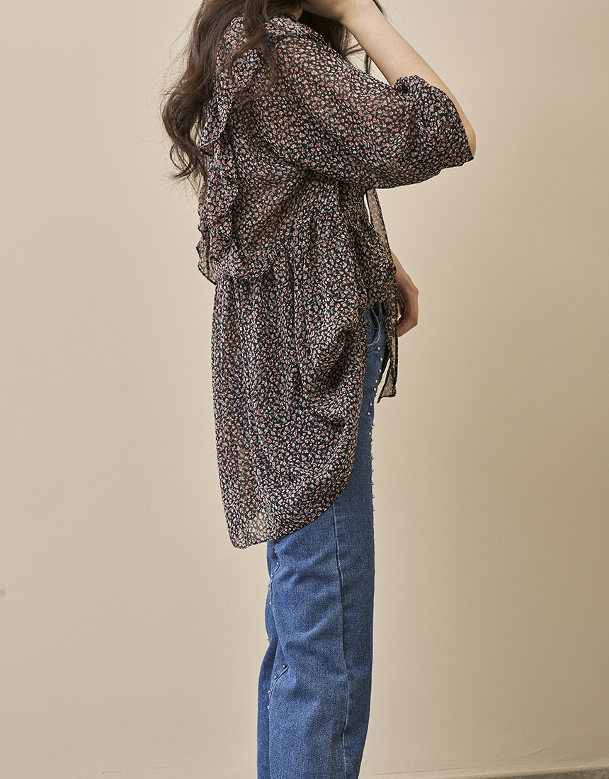 #플라워 프릴 나염 쉬폰 롱 블라우스