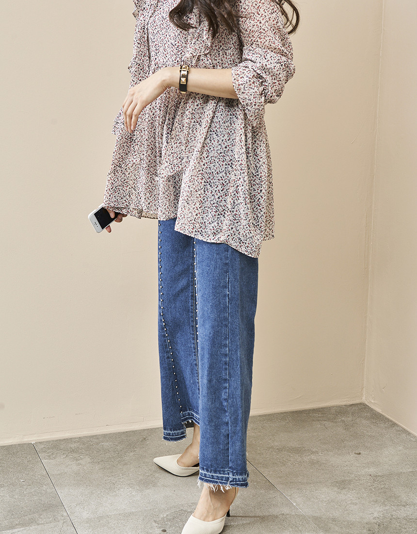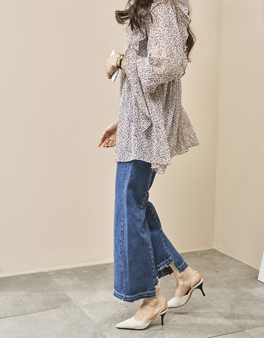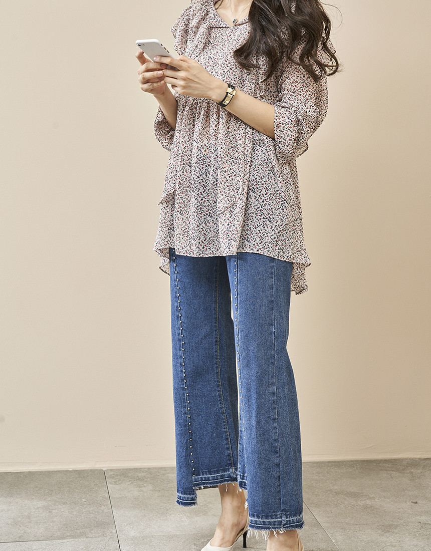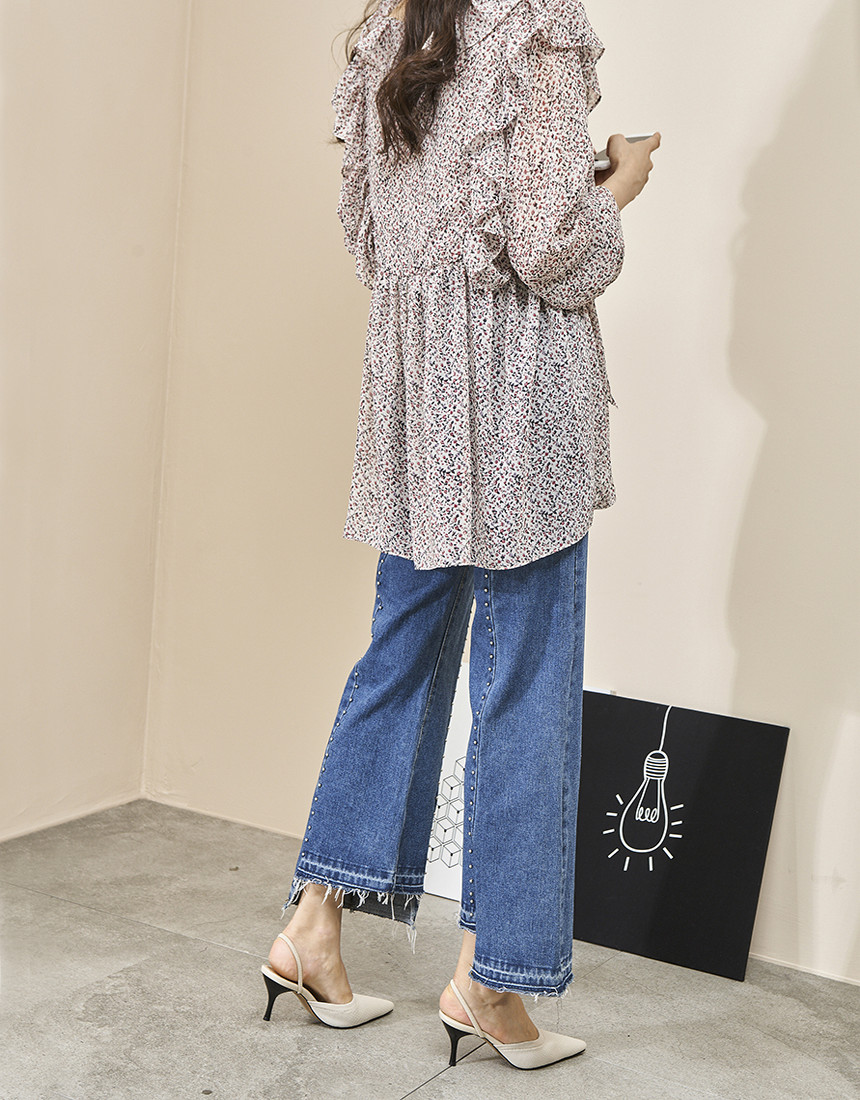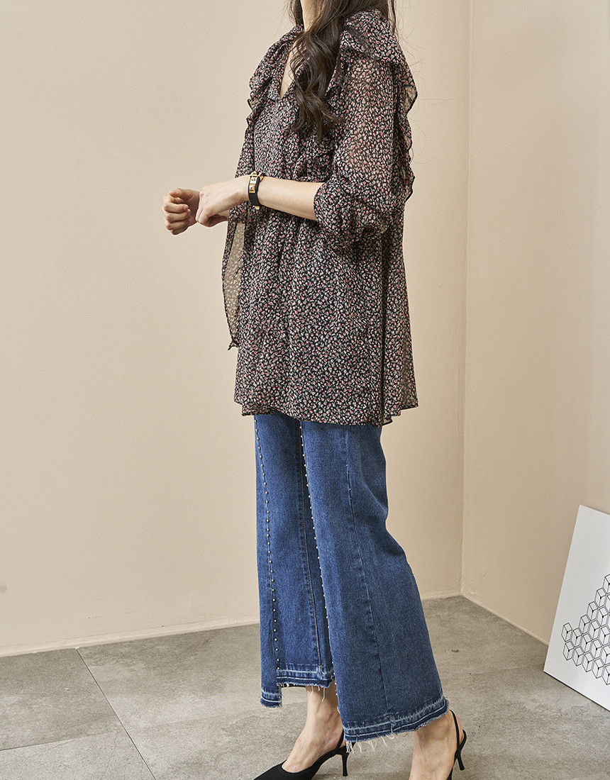 #플라워 프릴 나염 쉬폰 롱 블라우스