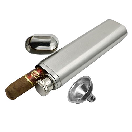 (JUJOR)/Kitchen Dining/Bar Tools Glasses/DIRECT FROM USA/JUJOR Stainless Steel Hip Flask 2 oz. Cigar Case/Holder Combo, Flask Funnel