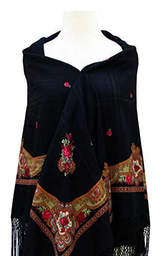Product Description Very elegent with unique design. This beautiful shawl is made with limited quantity. Size: 58" x 58" Color: Black Material: Mixed Material More wool Cold hand wash 0