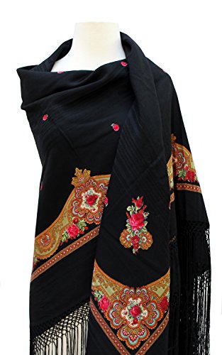 (Almachi)/Accessories/Scarves/DIRECT FROM USA/Black Woolen shawl with Small Red Rose Pattern