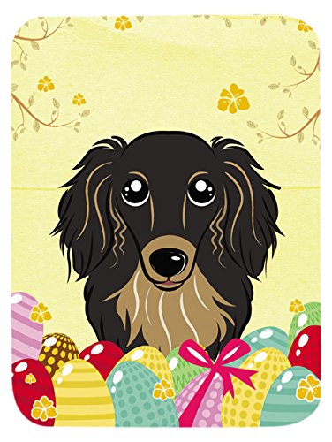 Caroline's Treasures BB1895LCB "Longhair Black and Tan Dachshund Easter Egg Hunt" Glass Cutting Board, Large, Multicolor