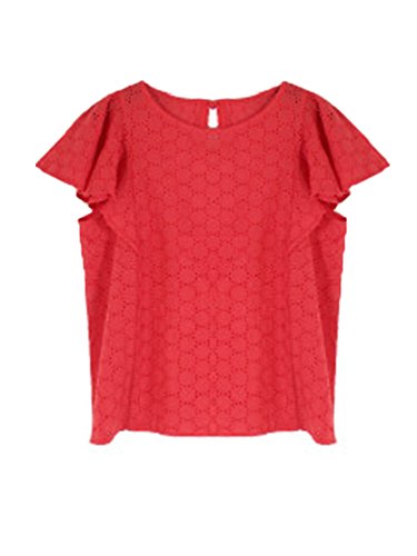 -. Title : ドット柄綿レースフリルブラウス M レッド