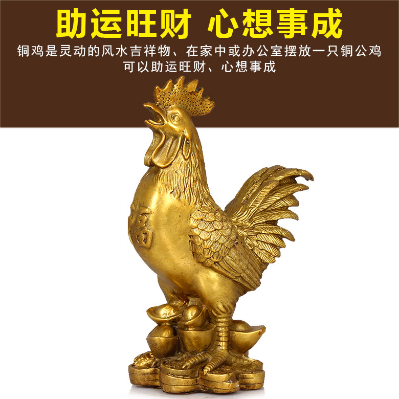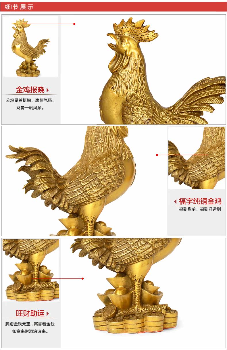 开光招财纯铜公鸡摆件铜公鸡元宝金鸡招风水工艺品客厅电视柜摆设