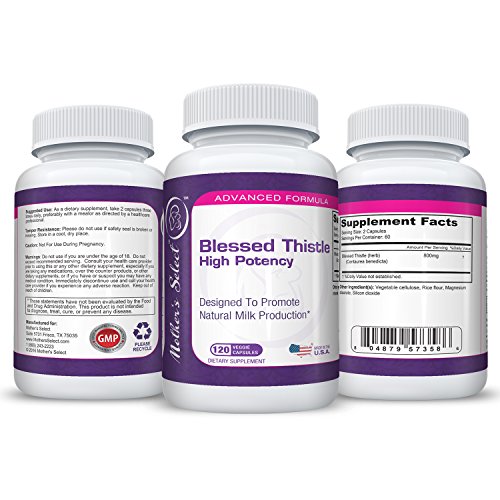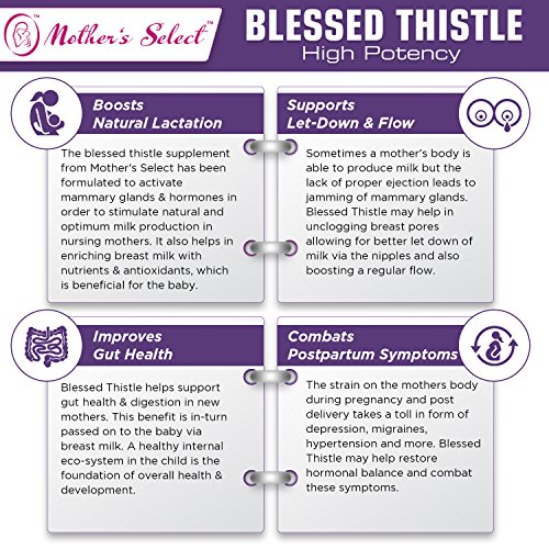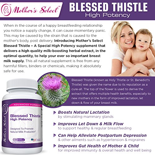Blessed Thistle by Mother’s Select Breastfeeding Supplement, High Potency Vegan Capsules Promote Increased Lactation, 120 Capsules - Postnatal &...