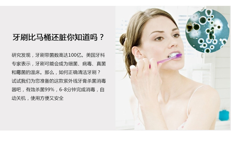 ? ? ? ? ?牙刷消毒杀菌干燥器,杀菌率99%,6~8分钟完成消毒