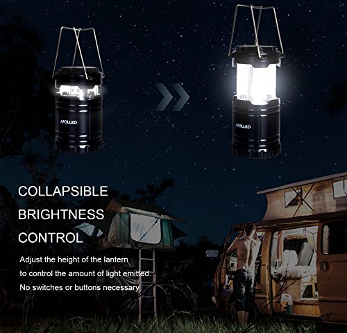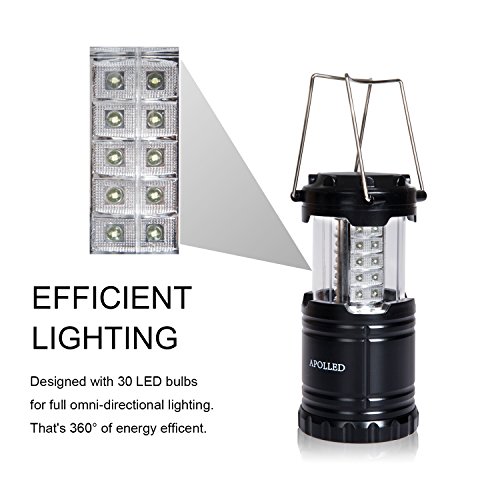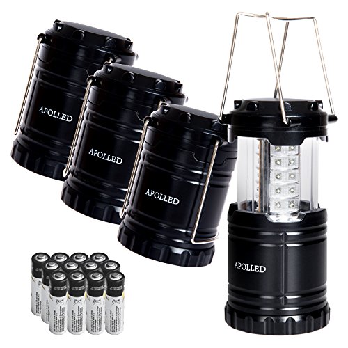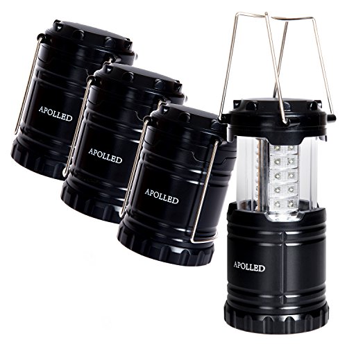 LED Lantern, APOLLED 4 Pack Portable Outdoor 30 LED Ultra Bright Waterproof Camping Lantern with 12 AA Batteries for Hiking, Camping, Emergencies (Black, Collapsible)