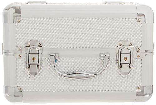 - Feature : High quality aluminum finish and construction with reinforced steel corners for extra durability / Beautiful new silver dot pattern finish with silver aluminum trimming / Two extendable trays on both sides / Large center storage compartment. Two secure easy close latches with key locks / Easy to clean interior. Removable shoulder strap