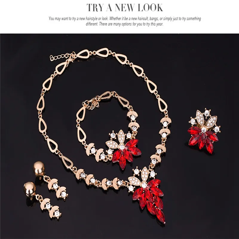 Package Including:1 pcs necklace+1 pair earrings+1 pcs ring+1 pcs bracelet