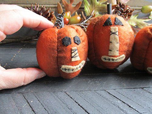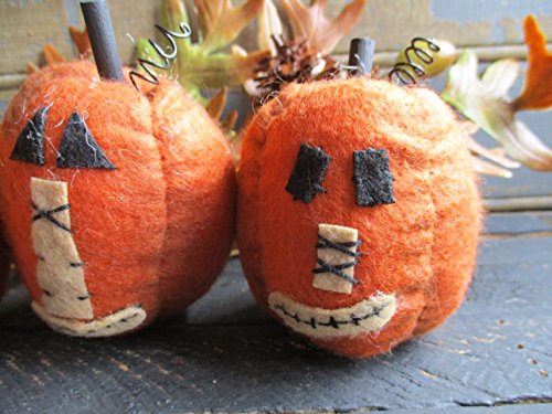 Pumpkin Bowl Fillers for Fall and Halloween Mini Felt Primitive Pumpkins Set of 3