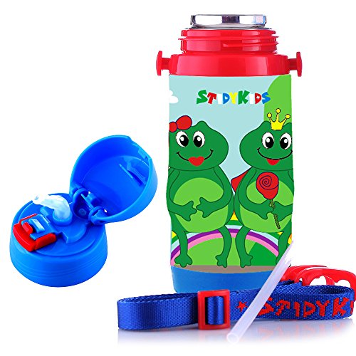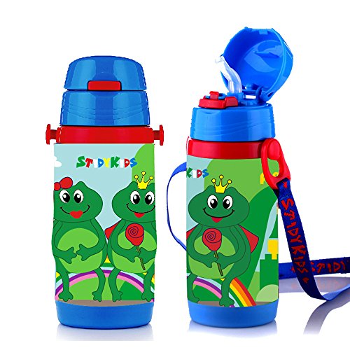 Vacuum Insulated Stainless Steel Water Bottle With Straw, 12-Ounce, Sports Water Bottle For Kids (Blue Frog)