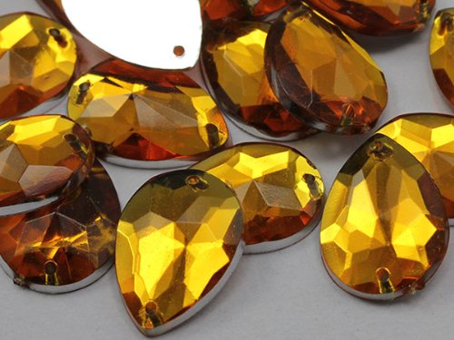 Acrylic 13x18mm teardrop jewels are 1/2" x 11/16". Two holes for sewing onto fabrics. Flat back with faceting. Transparent colors have a foil back. Great for garments, costumes.