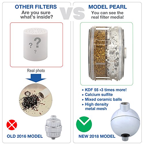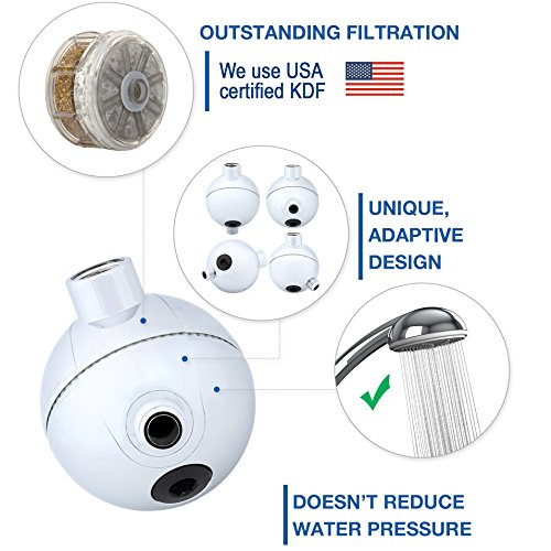 ★ OUTSTANDING FILTRATION – We use USA certified KDF which is much more effective than activated carbon. With 3 times the amount of KDF than other brands, this showerhead filter also has layers of mechanical filtration, calcium sulfite and mixed ceramic balls