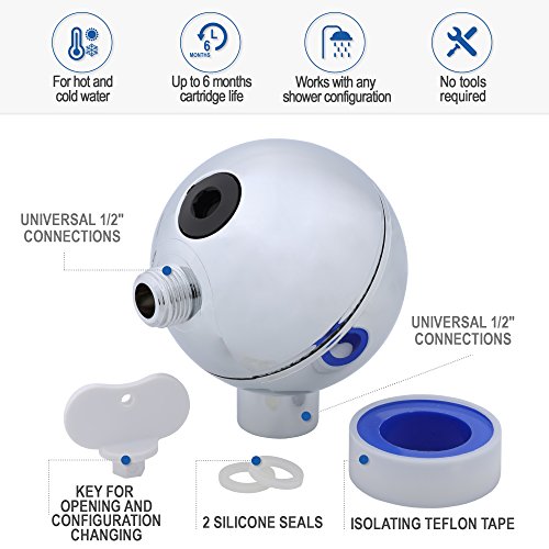 ★ NEW, UPGRADED DESIGN – Installs in minutes, change the cartridge and adjust the filter’s alignment to fit your needs! This hard water filter works with all kinds of showerheads