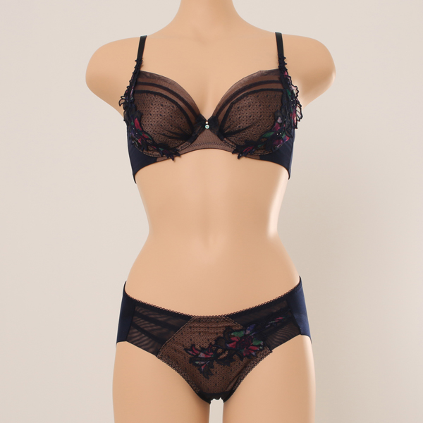 핀턱 디테일의 망소재와 여성미를 더한 도트망이 조화 를 이루며,
