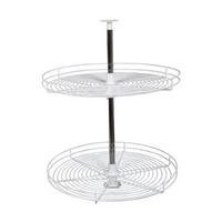 -. Feature : Individual shelf rotation on a 1 inch chrome telescoping post. / Full round wire shelves with a 24 inch diameter. / Round shelf design is ideal for most any kitchen cabinet space. / Shelf mounting system allows for unlimited shelf positions along the post. / Post height adjustable for spaces 25.5 inches to 31.5 inches tall.
