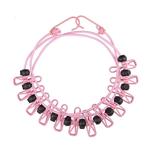 Portable Clothesline, Travel Elastic Clothesline, Clothes Lines Adjustable Windproof Stretchy Retractable Laundry Clothes Clothesline with 12pcs Clothespins for Outdoor Indoor (pink)