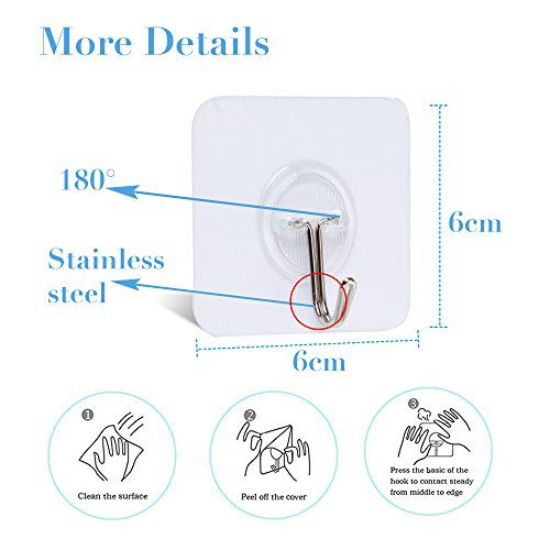 - ★SUPER POWERFUL ON ADSORPTION - Up to 11lb per hook on wall & ceiling, No nail needed.Size: 60mm(L) * 60mm(W).