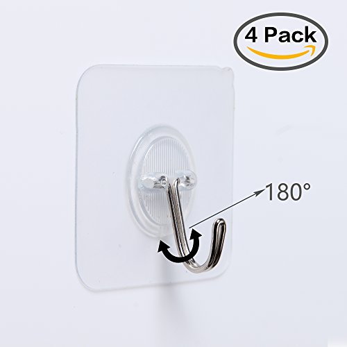 VOIQ 11lb/5kg(Max) Nail Free Adhesive Transparent Reusable Heavy Duty Wall Hook for Hat/Towel/Robe/Clothes,No Scratch,Waterproof & Oilproof,Bathroom Kitchen Wall Towel Hooks(4PCS) (Transparent)