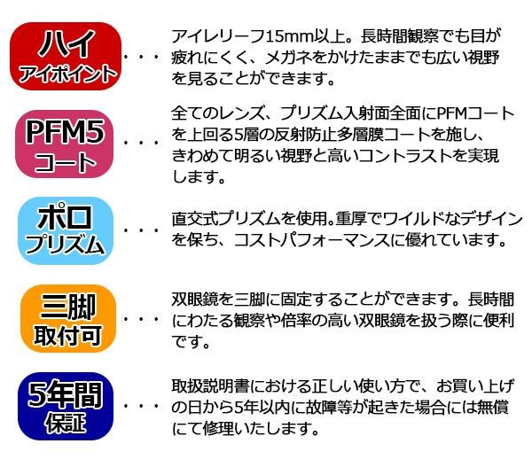 | 付属品 | ソフトケース、ストラップ(ナロー)、ビノホルダーV、取扱説明書兼保証書(保証期間:5年) |