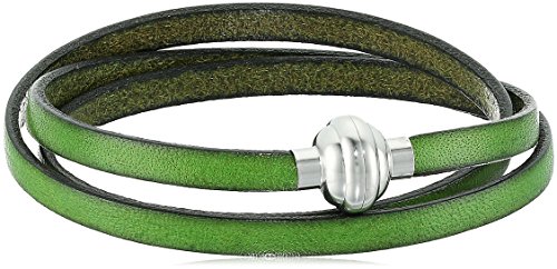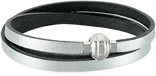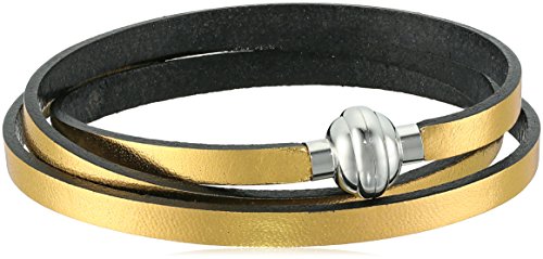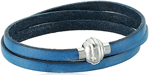 -. Title : Leather and Stainless Steel Magnetic Clasp Wrap Bracelet, 22.5"