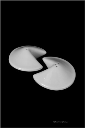 Chinese Fortune Cookie White Porcelain Shaker Salt and Pepper Shakers Set