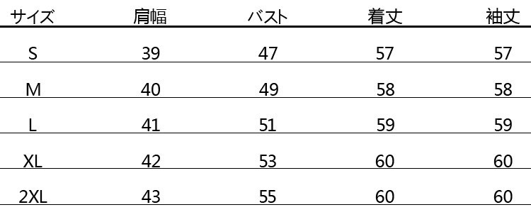 XL:着丈60 バスト106 肩幅42 袖丈60