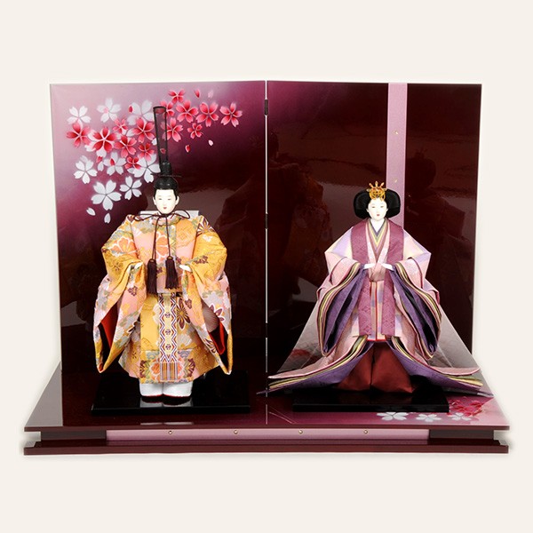 ・台座・屏風等には落ち着いた色目の雛人形セット。