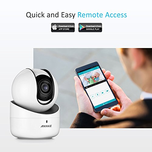 -. Binding : Electronics -. Brand : ANNKE -. Color : White -. EAN : 0712971011762 -. Feature : Stunning 720P Video ResolutionThe high performance camera brings great detail in everything it captures in 1280 x 720p Please notice if camera spins when connecting to power If not please change another adapter to have a try / One Touch Configuration Get your camera connected to Wi Fi or WPS via one touch and start video viewing in seconds Please make sure camera is plugged into router with ethernet cable and router has Internet / A sweeping view with PT With 0 degree to 355 degree pan and 20 degree to 90 degree you are free to get a sweeping view of your home and office Please check the yellow and green light on the ethernet port of the camera One should be blinking which indicates camera has connected to router successfully If not please change the ethernet port of router or another ethernet cable to have a try / Clear Two Way Audio Build in microphone and speakers allow you to talk to and hear from your loved ones remotely / Mobile Notification Alarm Get instant alarm on your smartphone or tablet the moment unexpected movement is detected -. Label : ANNKE -. Manufacturer : ANNKE -. MPN : AU-I21AE0104#CR1 -. PackageQuantity : 1 -. PartNumber : AU-I21AE0104#CR1 -. ProductGroup : Photography -. ProductTypeName : SURVEILANCE_SYSTEMS -. Publisher : ANNKE -. Studio : ANNKE -. Title : ANNKE HD 1.0MP 1280x720P Cloud Network Wireless IP Camera Day/Night Pan/Tilt WIFI Security Camera Two-Way Audio, (White) -. UPC : 712971011762