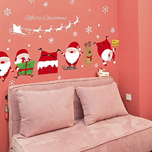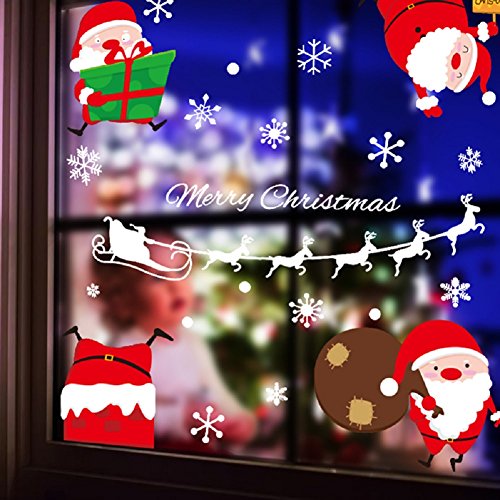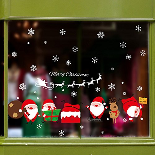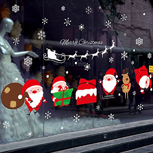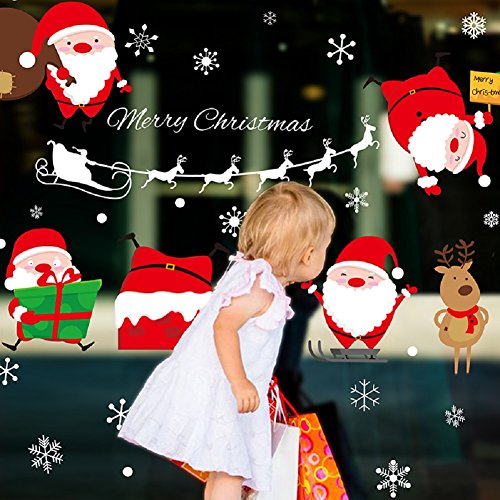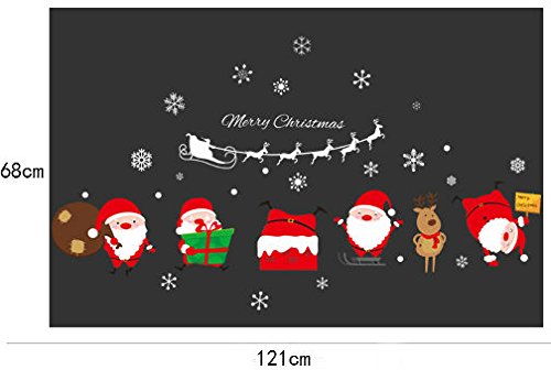 SWORNA Holiday Series SN-55 Merry Christmas Santa Claus Elk Sleigh Removable Vinyl DIY Wall Window Door Mural Decal Sticker for Retail Store/Coffee House/Restaurant/Supermarket/Dress Shop 27"H X 48"W