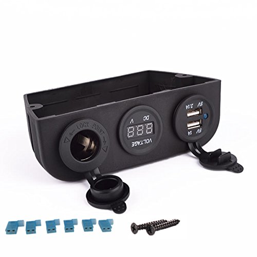 Iztor 12-24V Marine DC 12V Power Socket + DC Digital Voltmeter+dual usb sockets Three Hole Tent Socket Power Waterproof Boat Camper Caravans
