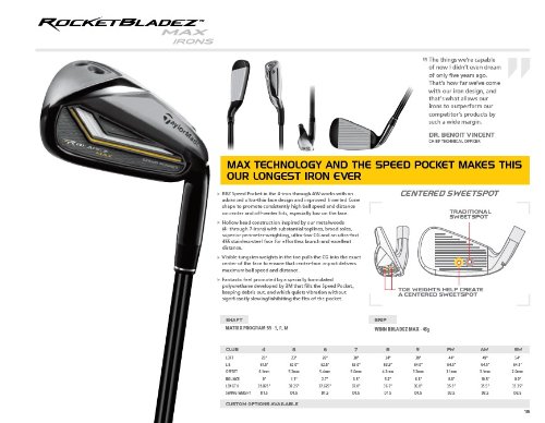 -. Binding : Sports -. Brand : TaylorMade -. Department : male -. Feature : Rbz speed pocket in the 4-iron through aw works with anadvanced ultra-thin face design / Hollow head construction inspired by our metal woods with substantial topline superior perimeter-weighting / Weights in the toe pulls the cg into the exact center of the face to ensure that center-face impact delivers maximum ball speed and distance -. Label : Taylormade- Golf Company -. Manufacturer : Taylormade- Golf Company -. Model : N1387707-P -. PackageQuantity : 1 -. ProductGroup : Sports -. ProductTypeName : GOLF_CLUB_IRON -. Publisher : Taylormade- Golf Company -. Studio : Taylormade- Golf Company -. Title : TaylorMade Men's Rocketbladez Max Iron Set