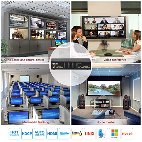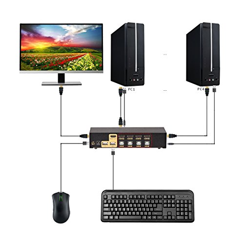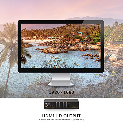 - 【KVM SWITCH】One USB or PS/2 console controls 4 HDMI - interface devices. Supports auto scan and 3 switch modes: Button control / keyboard hot-key switch / Software Control (CD-Driver include).