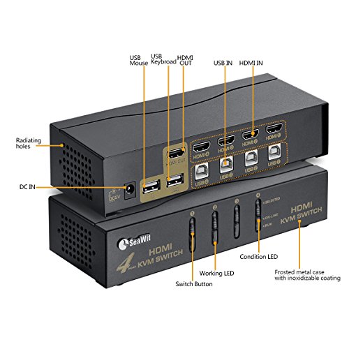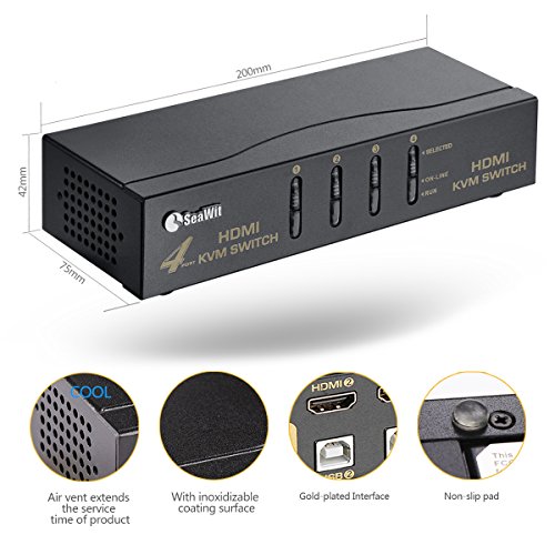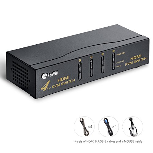 HDMI KVM Switch - 4 Port KVM Switcher Support 1080P 3D Auto Scan with 4 HDMI Cables & 4 USB-B Cables for Windows / Linux / Mac by Sea Wit