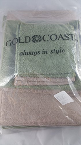 -. Title : 10 Piece Gold Coast Dish Dry Mat and Towels (Green & Beige)