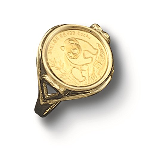 -. Title : 14 Kt Solid Yellow Gold Coin Ring 24 Kt Chinese Panda Bear Coin (1502(Random Year Coin)