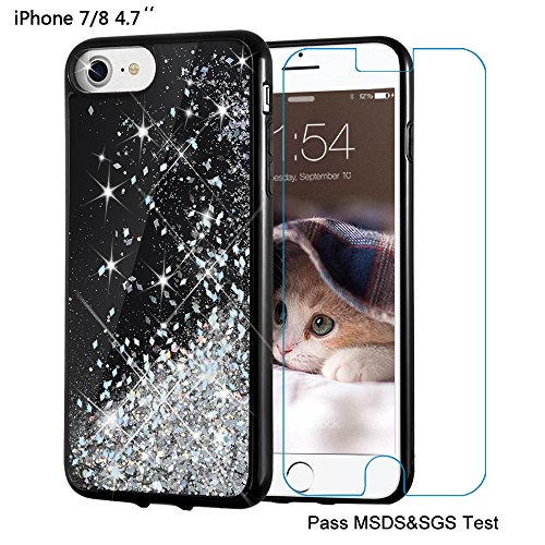 -. Title : iPhone 7/8 Case, Maxdara [Screen Protector] Black Glitter Liquid Sparkle Protective Case Floating Bling Pretty Quicksand for Girls Children [Pass MSDS&SGS Safety Test]