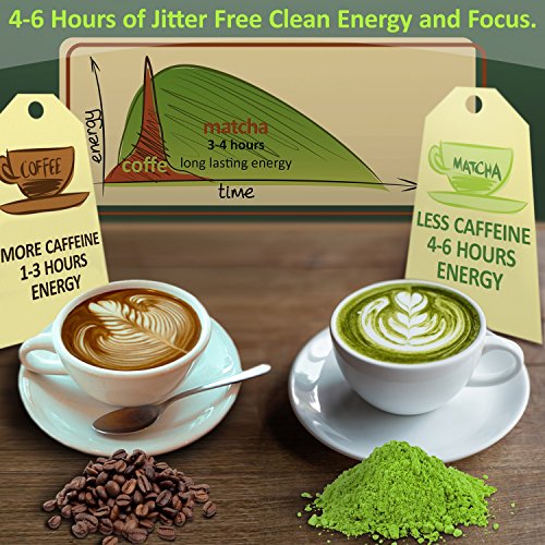 FEEL THE ENERGY & FOCUS WITHOUT THE JITTERS by starting your day with a Matcha Green Tea Latte. For over a 1000 years the Japanese have used Matcha as a means to to stay focused and energized throughout their day. Our Organic Matcha Green Tea Powder contains a natural amino acid called L-Theanine which calms stress and gives you all day, jitter free energy, for over 6 hours without a crash. If you're looking for a substitute to your coffee addiction, Our Matcha tea is the perfect choice.