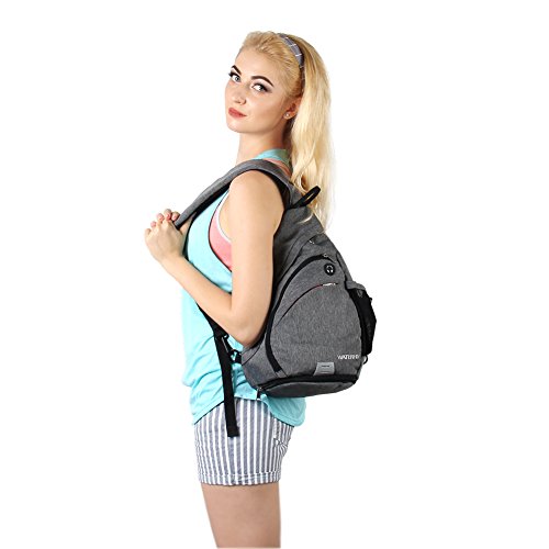 LARGE CAPACITY & MULTIPLE COMPARTMENT: 7 pockets in total- one main pocket to fit iPad 4/5/6; one zippered gause pocket to store your umbrella on the base of the outside backpack; one bottle pocket sided the sling bag and two small pockets on the strap and back, as well as several inner separated small pockets, you can take necessities all in one bag