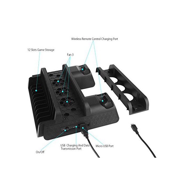 다기능:PS4/PS4 Pro/PS4 Slim본체는 냉각과 수납에 대응,2대의 콘트롤러를 동시에 충전하는 것 를 할 수 있습니다.게다가(더구나),12 개게임 수납 storage가 첨부 됩니다