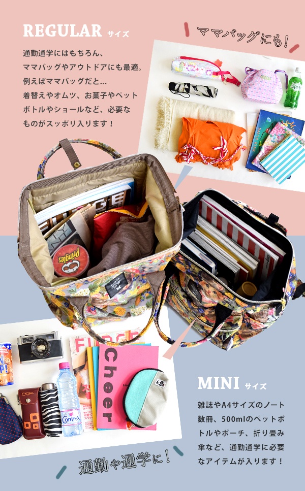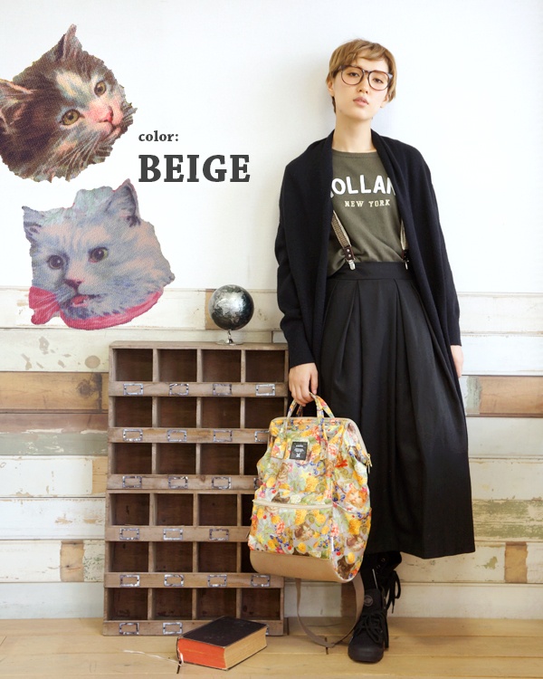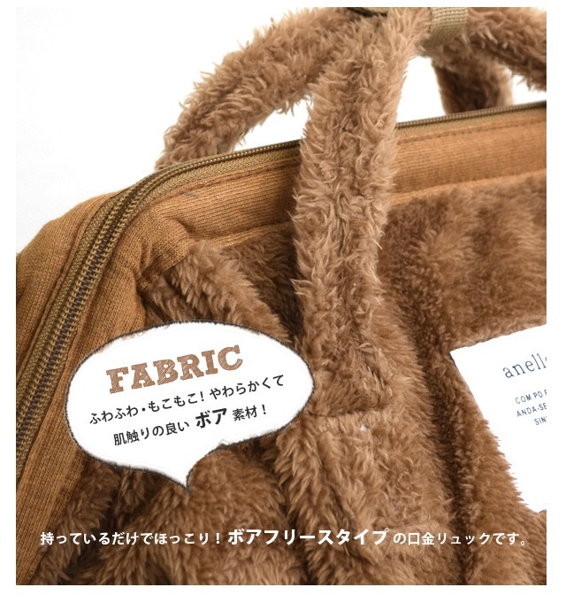 - anelloで人気No.1の口金リュックに、earthオリジナルのCuteな総柄プリントの裏地をあしらいました。軽量なポリエステルキャンバスを使用しているので、スタイリングもノンストレスです。背面直結ファスナーなど、機能性にもこだわりが感じられるディテールもポイントです。シーンやテイストを問わず、デイリーから通勤通学まで幅広く活躍してくれるアイテムです。