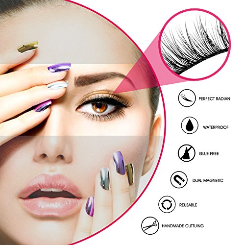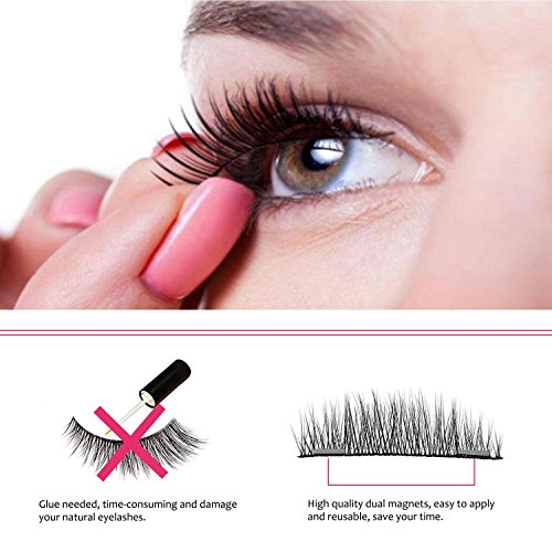 ❤️ GLUE FREE & MAGNETIC DESIGN -- Innovative dual magnetic design, no glue required, won't cause irritation to your eyes or cause damage to your natural eyelashes. Also, the 3D false lashes will stay put until you remove them because of its strong magnetic.