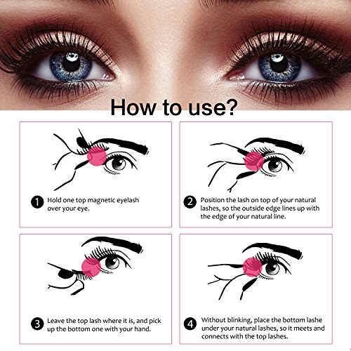 Then this magnetic eyelashes is the best choice for you. It is with no glue and no damage to natural lashes, give you an ultra-glamorous and natural look. HOW TO USE:For a better result, curl these magnetic eyelashes and your natural lashes before first use, and apply some mascara to hold the curl so it will be easier to wear. ( Note: Do not apply mascara directly to the magnetic eyelashes )