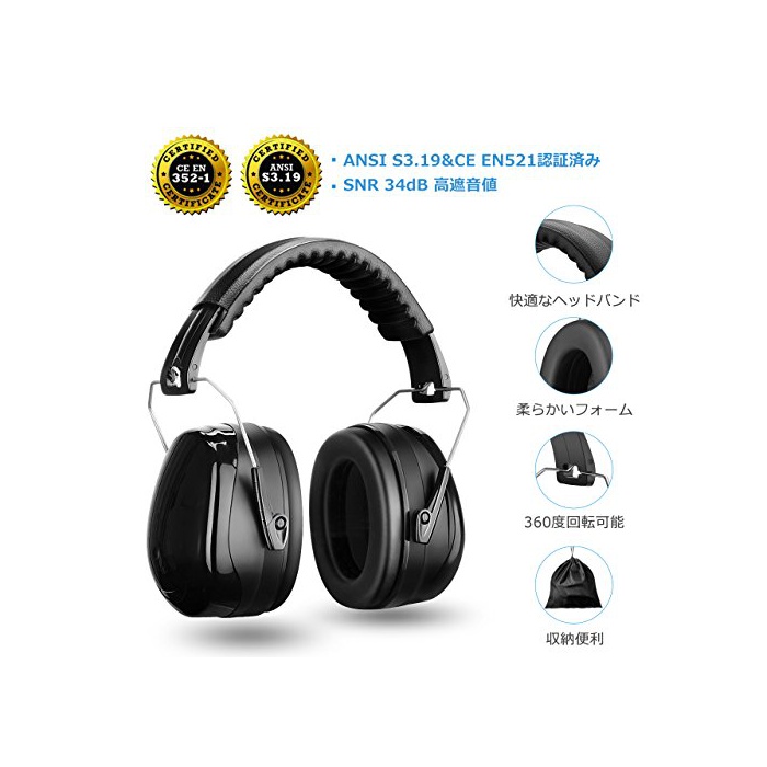 【프로패셔널인 방음 성능】ANSI S3.19&CE EN521인증필,US와 유럽 스탠다드 인증 테스트에 합격하고 있고, 안심에 사용 하실 수 있습니다.2층의 소음 억제 폼,밀봉성 좋은거야이 컵과 독특한 더블외 껍질의 설계 되고,SNR 34dB/NRR 28dB에 높은 방음 성능을 실현,귀를 확실히 보호 합니다.