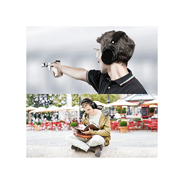 Patech 방음 이어 muff 방음치34dB접는형 장착감 양호 ANSI S3.19/CE EN521인증필 청각을 보호 하는 이덮개 어른 아이 겸용 프로패셔널 (블랙)