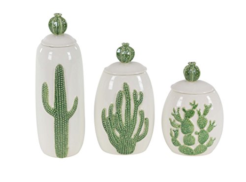 Deco 79 56766 Glazed Ceramic Cactus Jars (Set of 3), White/Green