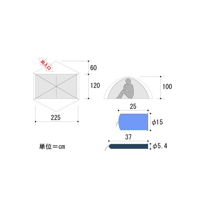 【소재】 플라이 씨트/20D폴리에스텔 립(폴리우레탄 방수 가공)이너 텐트/10D나일론 립(환기 발수 가공)그랜드 씨트/30D폴리에스텔 립(폴리우레탄 발수 가공)폴/DAC-7001S