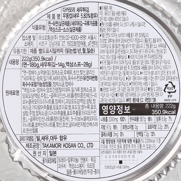 1. 다카모리 새우튀김 우동컵 222g