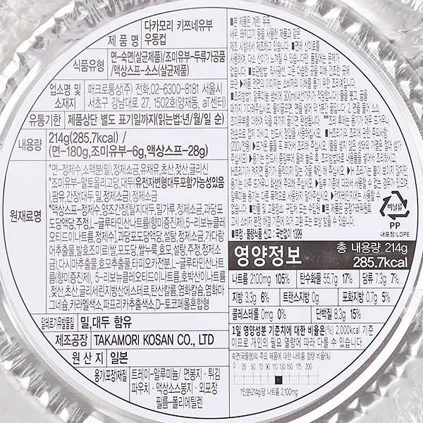 2. 다카모리 키쯔네유부 우동컵 214g